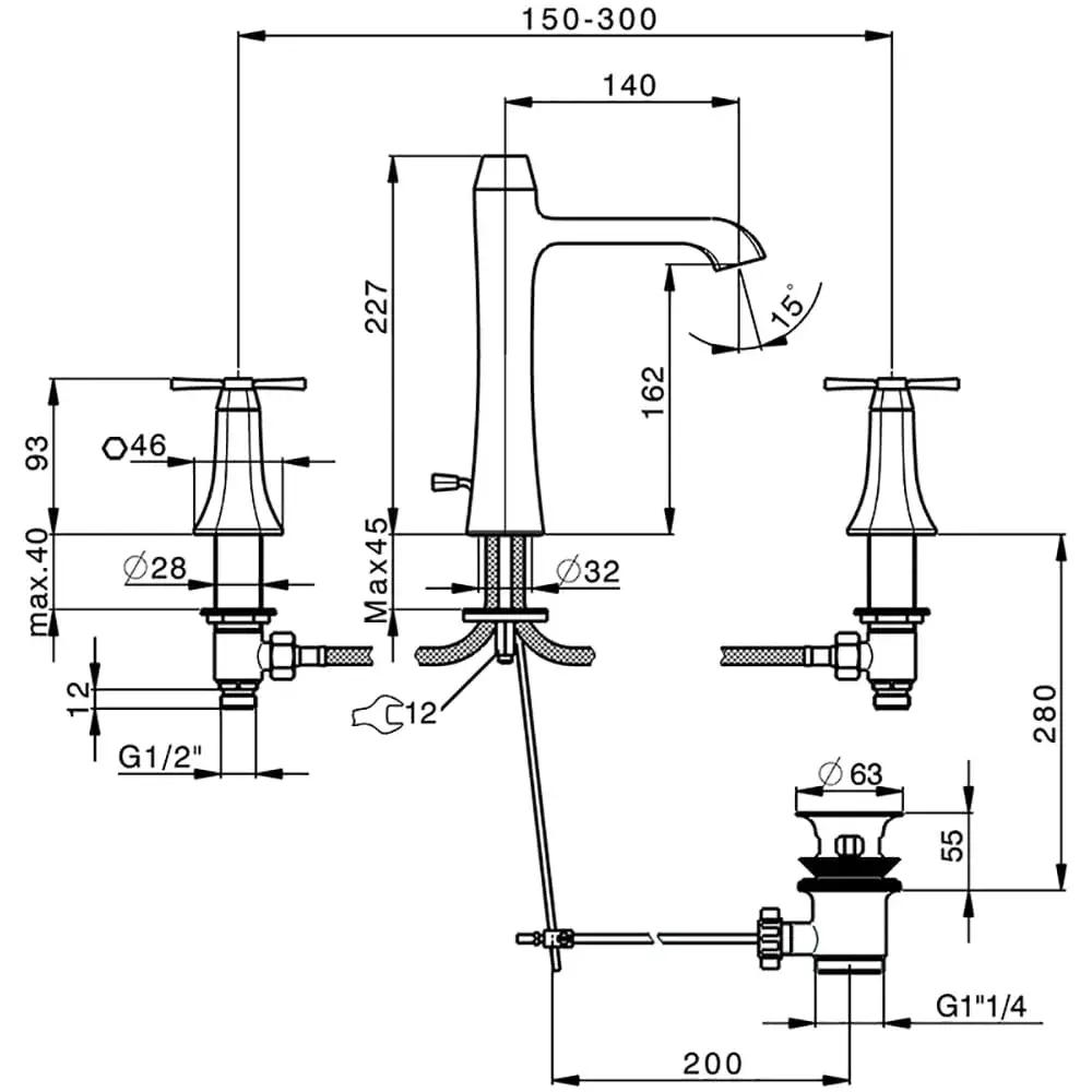 Cisal Cherie Смеситель для раковины на 3 отверстия, цвет: Chrome/Matt Black CX0010606T