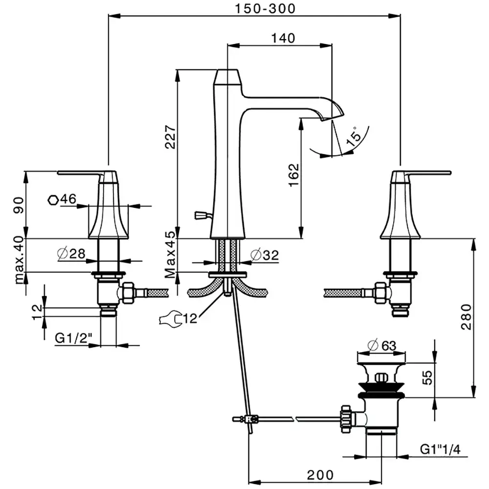 Cisal Cherie Смеситель для раковины на 3 отверстия, цвет: Gold/Night Black CF0010607C