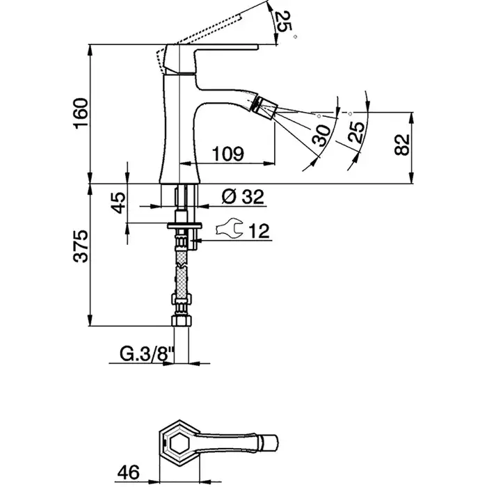 Cisal Cherie Смеситель однорычажный для биде на 1 отверстие, цвет: Chrome/Matt Black CH0005646T