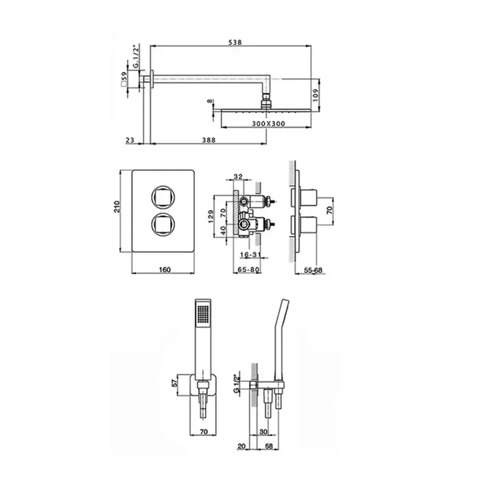 Cisal Cubic Душевой комплект: смеситель термостатический на 2 выхода, цвет: Chrome CU0KT01021