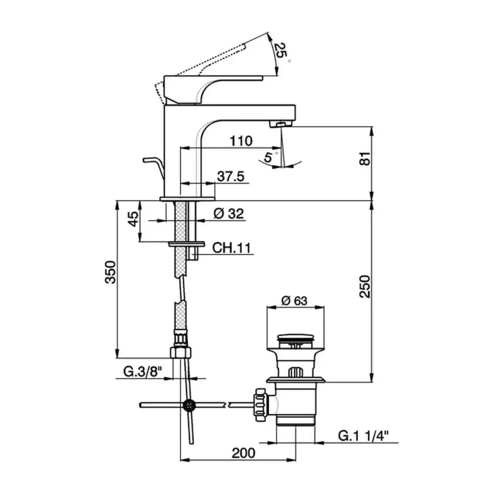 Cisal Cubic Смеситель для раковины на 1 отверстие, с донным клапаном, цвет: Night Black CU00049540