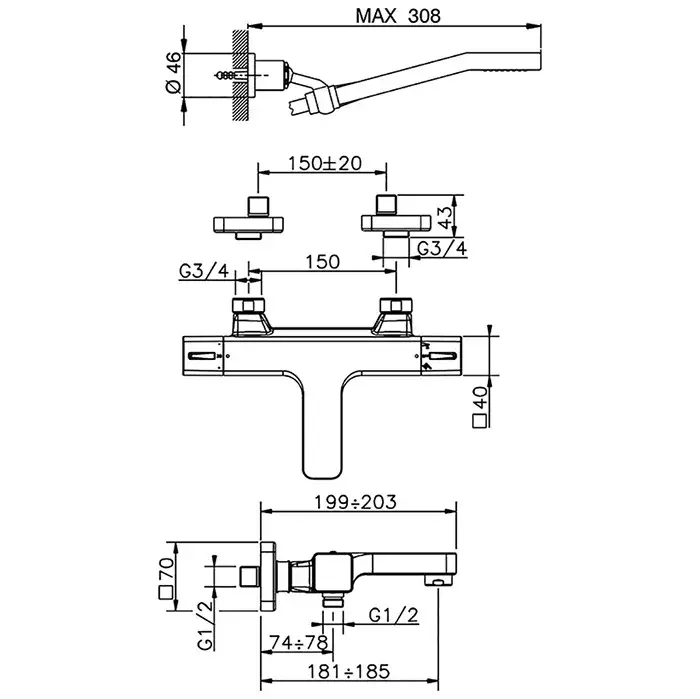 Cisal Cubic Смеситель термостатический настенный для ванны с ручной лейкой, цвет: Chrome CUD2102021