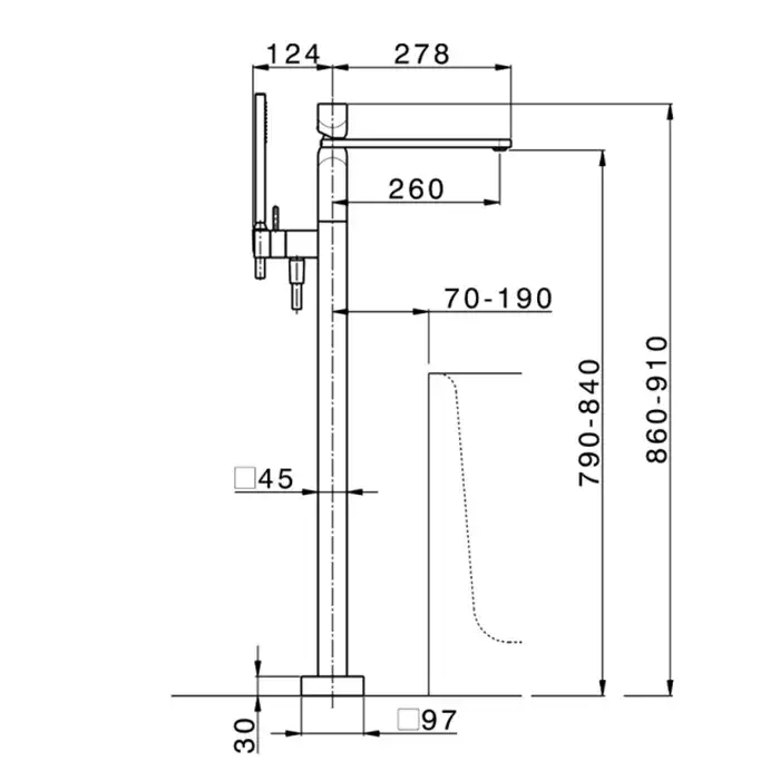 Cisal Hi-Rise Смеситель для ванны напольный, с ручным душем, цвет: Chrome RI01420421