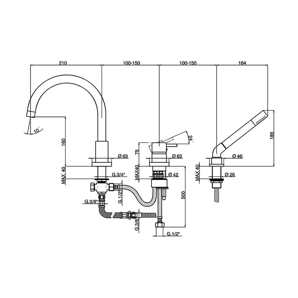 Cisal Less New Смеситель на борт ванны на 3 отверстия с ручной лейкой, цвет: Chrome LN00126021