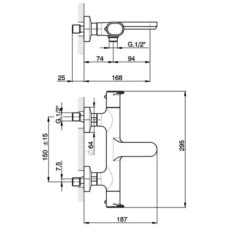 Cisal LineaViva Смеситель термостатический настенный для ванны, цвет: Chrome LVT2101021