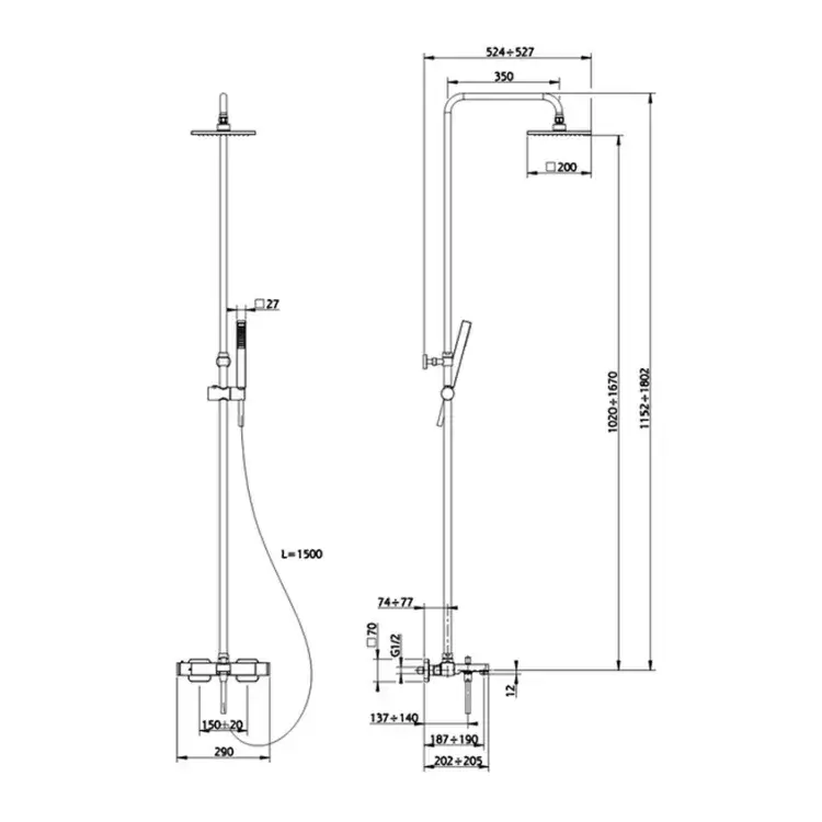 Cisal Roadster Душевая стойка с верхним душем 29x183,7h см, со смесителем, цвет: Chrome RRC8301021