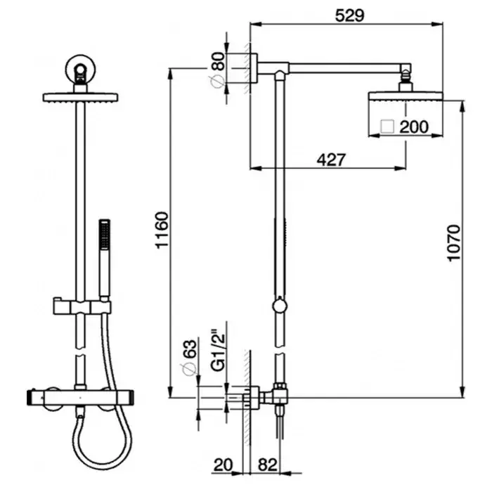 Cisal Roadster Настенная душевая стойка: термостатический смеситель, цвет: Chrome RRC7802021