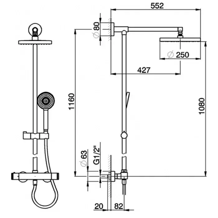 Cisal Roadster Настенная душевая стойка: термостатический смеситель, цвет: Chrome RRC7802021