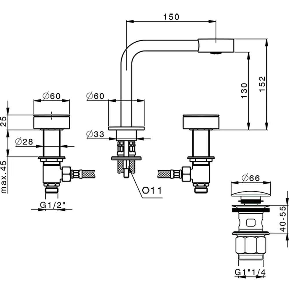 Cisal Slim Смеситель для раковины на 3 отверстия, с донным клапаном, цвет: Night Black SM00102040