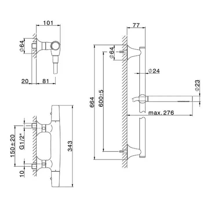 Cisal Vita Комплект для душа: термостат + душевой гарнитур, цвет: Chrome VIS0101021