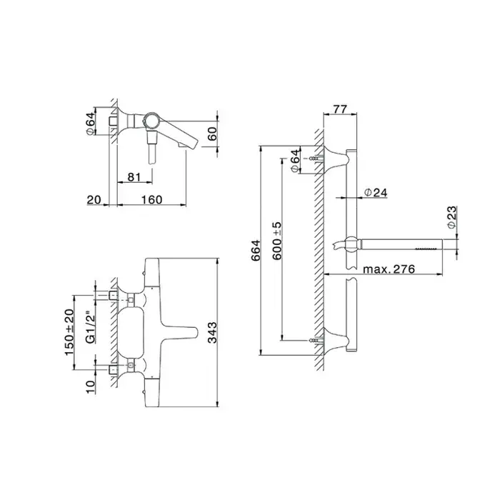 Cisal Vita Смеситель для ванны настенный, с ручным душем, цвет: Night Black VI00010440