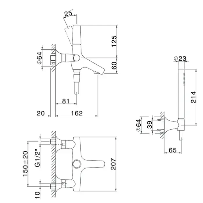 Cisal Vita Смеситель для ванны настенный, с ручным душем, цвет: Night Black VI00010440