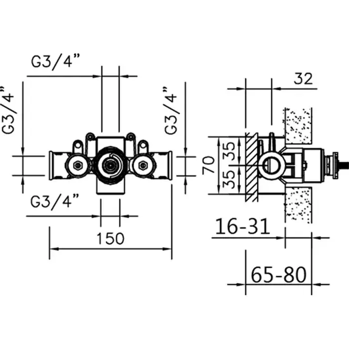 Cisal Встраиваемая часть термостатического смесителя 3/4 без запорного вентиля ZA00722004