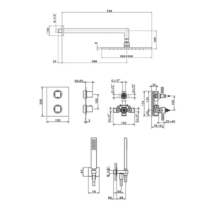 Cisal Wave Душевой комплект: смеситель термостатический на 2 выхода, цвет: Brushed Nickel WE0KT0102F