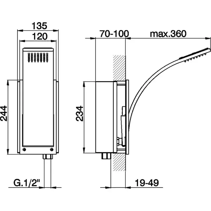 Cisal Wave Верхний душ настенный 12x36x24,4h, цвет: Chrome WA01319021