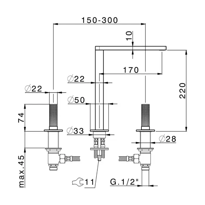 Cisal X32 Смеситель для раковины на 3 отверстия, цвет: Dark Brass Brushed X20010405H