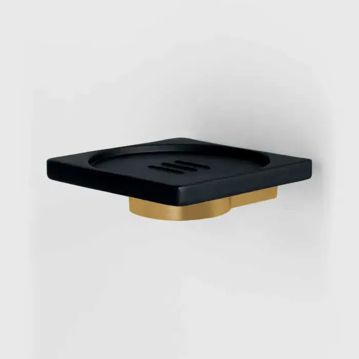 Colombo MiniQ Мыльница подвесная, цвет:золото матовое/черная резина