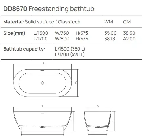 Dea Design Edge Ванна из Solid Surface отдельностоящая 150x75 см, цвет: orange DD8670 1500 7