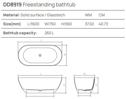 Dea Design Edge Ванна из Solid Surface отдельностоящая 160x75 см, цвет: black DD8919 1600 16
