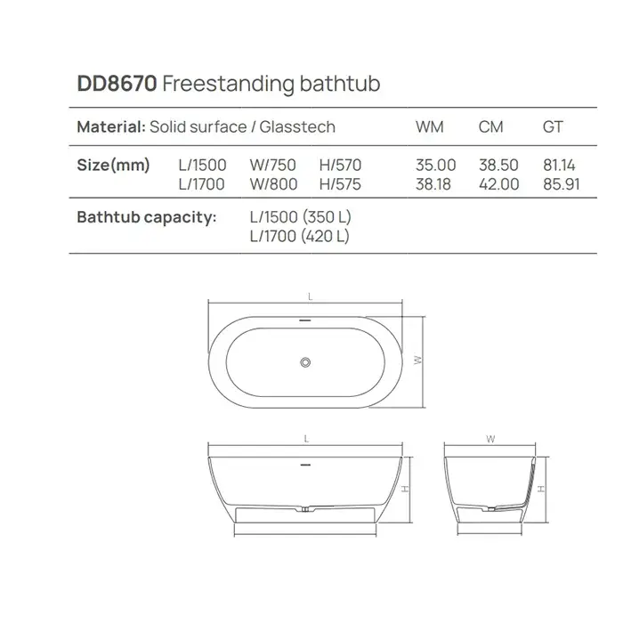 Dea Design Edge Ванна из Solid Surface отдельностоящая 170x80 см, композит, цвет: белый матовый DD8670 1700 18