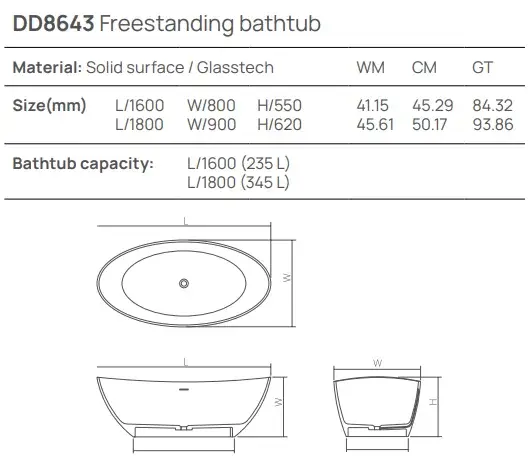 Dea Design Elegant Ванна 163x85x64см., отдельностоящая, Solid Surface, цвет: White №18
