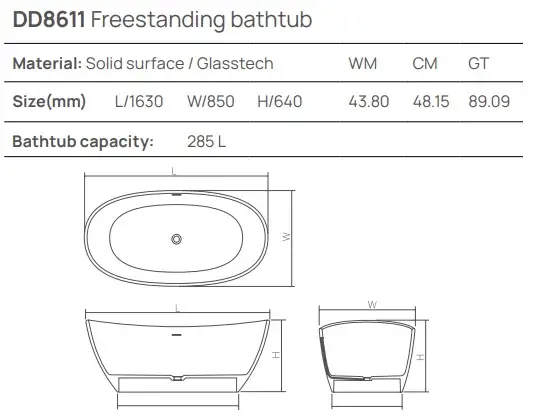 Dea Design Elegant Ванна 163x85x64см., отдельностоящая, Solid Surface, цвет: White №18