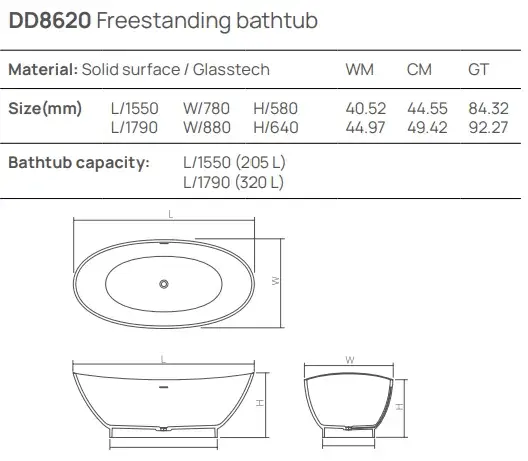 Dea Design Elegant Ванна из Solid Surface отдельностоящая 155x78 см, цвет: white DD8620 1550 18
