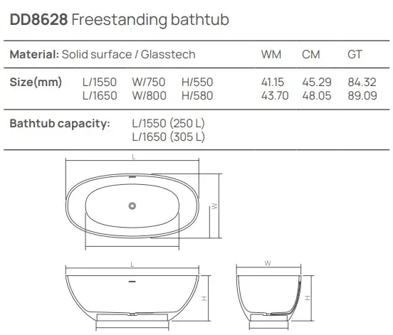 Dea Design Nature Ванна 155х75х55см., отдельностоящая, Solid Surface, цвет: White №18