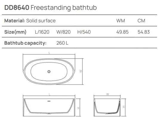 Dea Design Nature Ванна из Solid Surface отдельностоящая 162x82 см, цвет: graphite DD8640 1620 5