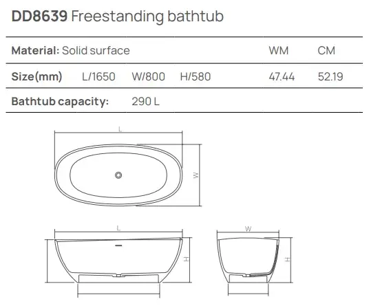 Dea Design Nature Ванна из Solid Surface отдельностоящая 165x80 см, цвет: graphite DD8639 1650 5