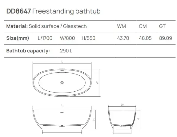 Dea Design Nature Ванна 155х75х55см., отдельностоящая, Solid Surface, цвет: White №18