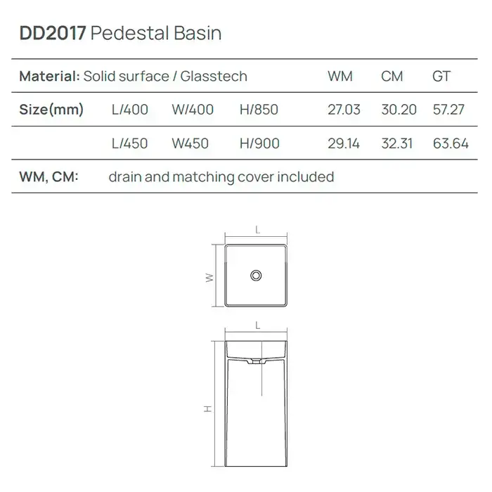 Dea Design Pedestal Basin Раковина напольная 45x45x90h см, Solid Surface, цвет: grey brown DD2017 450 6