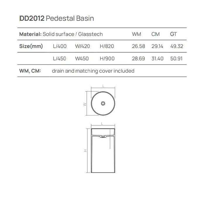 DEA DESIGN Pedestal Basin Раковина напольная d450хh900 мм, цвет белый