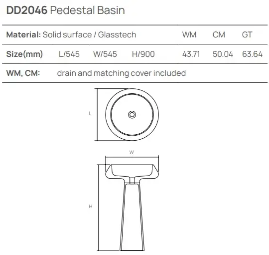 Dea Design Pedestal Basin Раковина напольная d45хh90см, цвет: белый