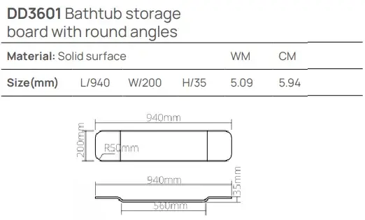 Dea Design Полка для ванны 94x20 см, Solid Surface, цвет: grey brown DD3601 940 6