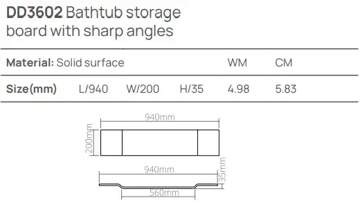 Dea Design Полка для ванны 94x20 см, Solid Surface, цвет: grey DD3602 940 3