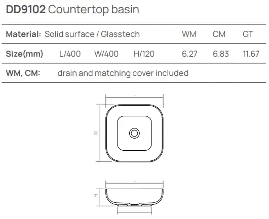 Dea Design Раковина чаша 40x40x12h см, Solid Surface, цвет: graphite DD9102 400 5