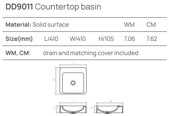Dea Design Раковина чаша 41x41x10,5h см, Solid Surface, цвет: wave DD9011 410 15
