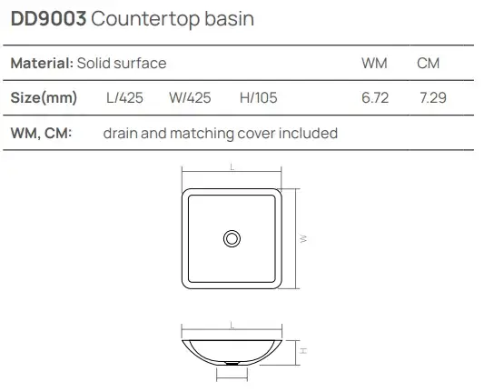 Dea Design Раковина накладная 90x42x15h см, Solid Surface, цвет: lavender DD9064 900 8