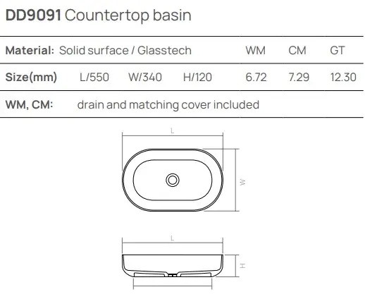 Dea Design Раковина чаша 60x40x15,5h см, Solid Surface, цвет: lotus DD9077 600 13