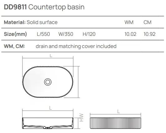 Dea Design Раковина чаша 60x40x15,5h см, Solid Surface, цвет: lotus DD9077 600 13