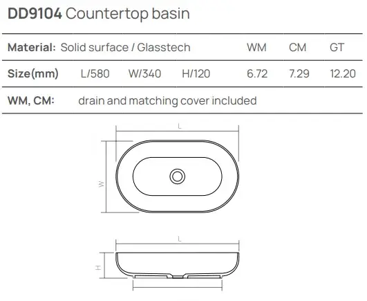 Dea Design Раковина чаша 60x40x15,5h см, Solid Surface, цвет: lotus DD9077 600 13