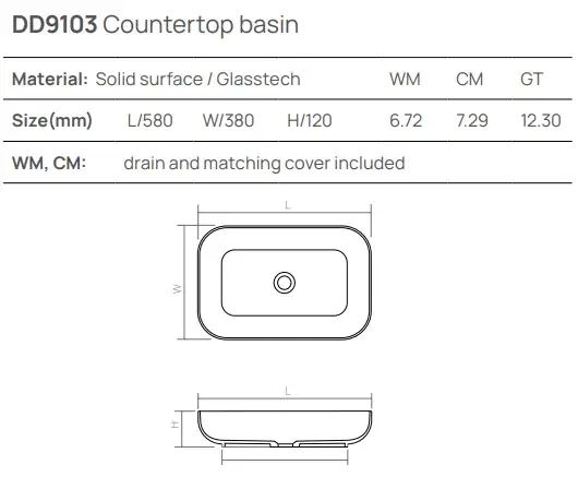 Dea Design Раковина накладная 90x42x15h см, Solid Surface, цвет: lavender DD9064 900 8
