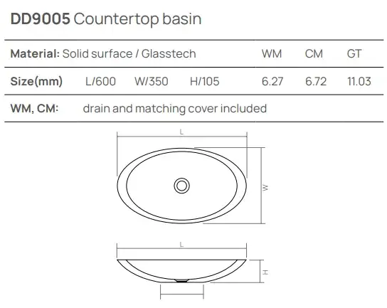 Dea Design Раковина чаша 60x40x15,5h см, Solid Surface, цвет: lotus DD9077 600 13