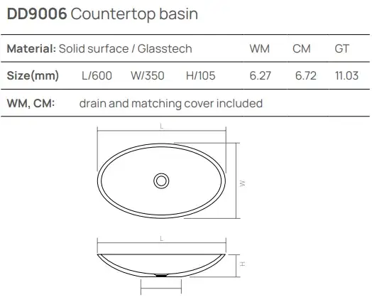Dea Design Раковина чаша 60x40x15,5h см, Solid Surface, цвет: lotus DD9077 600 13