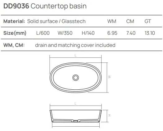 Dea Design Раковина чаша 60x40x15,5h см, Solid Surface, цвет: lotus DD9077 600 13