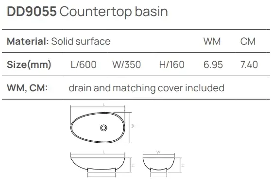 Dea Design Раковина чаша 60x40x15,5h см, Solid Surface, цвет: lotus DD9077 600 13
