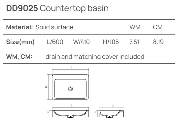 Dea Design Раковина чаша 60x41x10,5h см, Solid Surface, цвет: wave DD9025 600 15