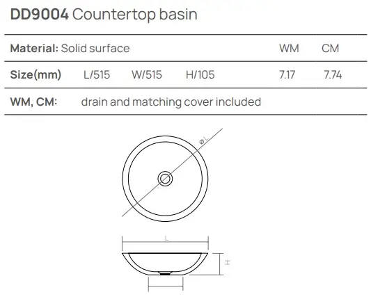 Dea Design Раковина чаша d51,5x10,5h см, Solid Surface, цвет: wave DD9004 515 15