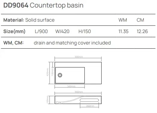 Dea Design Раковина накладная 90x42x15h см, Solid Surface, цвет: grey brown DD9064 900 6